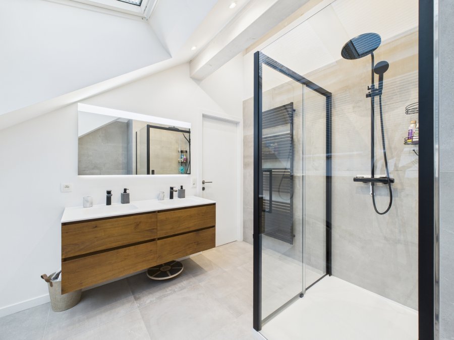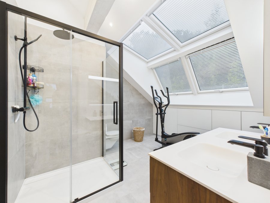 - Une suite parentale avec salle de douche privative en mezzanine de +/- 40 m²,