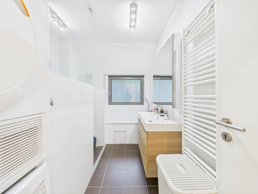 - Une salle de douche avec douche, baignoire et emplacement pour la machine à laver et le séche-linge,